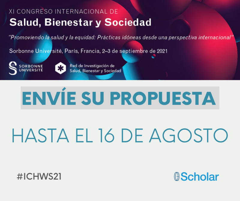 Les informamos de que el 16 de agosto es la fecha límite para enviar su propuesta de trabajo para el próximo XI Congreso Internacional de Salud, Bienestar y Sociedad que se celebrará los días 2-3 de septiembre de 2021 en la Sorbonne Université, París (Francia) en modalidad mixta. Están a tiempo para hacernos llegar su propuesta de trabajo pulsando este botón.