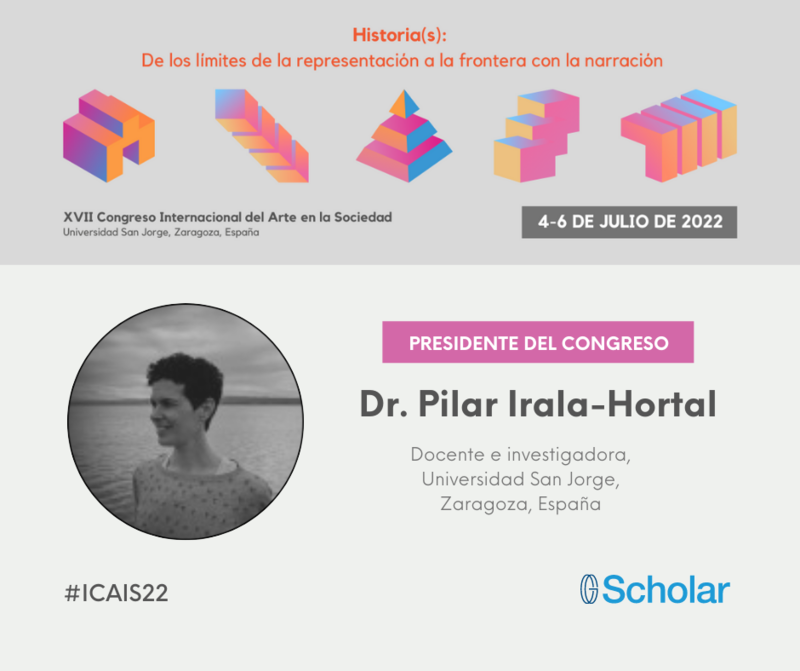 Es un auténtico lujo presentarles a la Dra. Pilar Irala-Hortal, Docente e investigadora de la Universidad San Jorge (Zaragoza, España), una de las Presidentes de la Red de Investigación del Arte en la Sociedad y a la Presidente del próximo XVII Congreso Internacional del Arte en la Sociedad.
