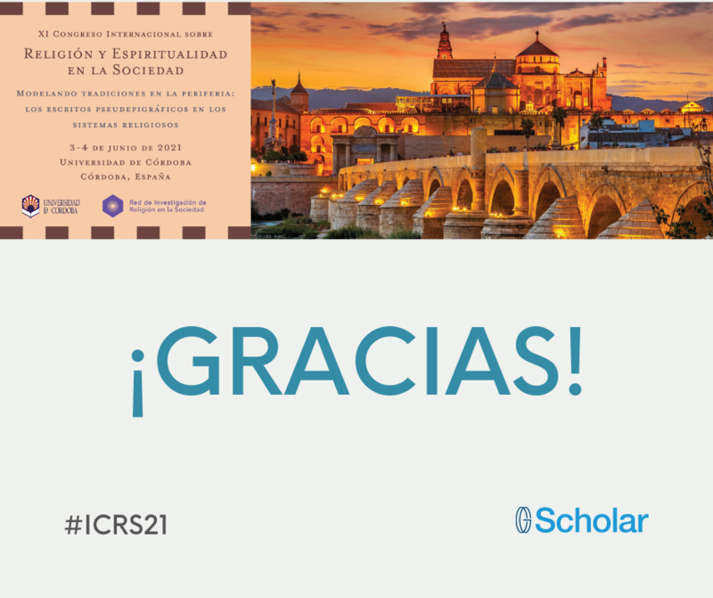 Les agradecemos a todos los participantes, ponentes, becarios y oyentes del XI Congreso Internacional sobre Religión y Espiritualidad en la Sociedad sus aportaciones en las sesiones en directo, sus ponencias asincrónicas y sus pósteres. Esperamos que hayan disfrutado de la modalidad online del Congreso.