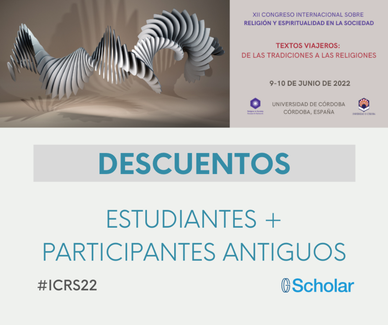Para participar en el proximo XII Congreso Internacional sobre Religión y Espiritualidad en la Sociedad se ofrecen diferentes becas para estudiantes, participantes antiguos y participantes online. Consulten estas cuotas reducidas aquí