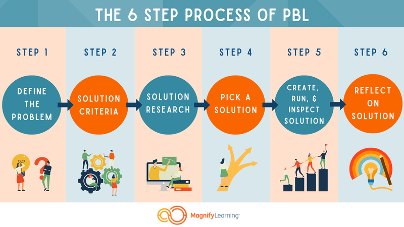 يمكن أن تأتي المشاكل أو الأفكار الجيدة من الطلاب أو الوالدين أو أعضاء المجتمع. بدلاً من المحاضرات وتعلم الكتب، يمكن للمدرسين التفكير في الخطوات المطلوبة لحل مشكلة ما واستخدام هذه الخطوات كأنشطة لتعلم المشروع. وبدلاً من التخطيط لمشروع ضخم، يمكن جعل عملية التعلم أكثر قابلية للإدارة من خلال تقسيم المشروع إلى أجزاء أصغر، مع وجود نقاط تفتيش متكررة مدمجة في الجدول الزمني.