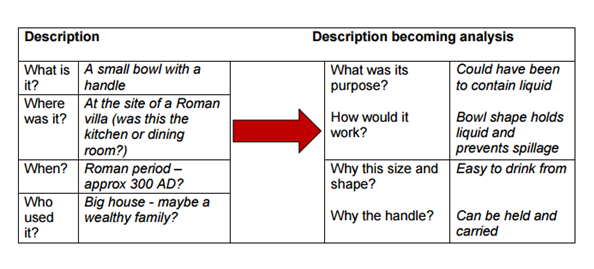 Putting this into context, let’s consider a student is presented with an archaeological artefact. A descriptive v/s analytical write-up about the artefact is presented below (Plymouth, Critical Thinking):