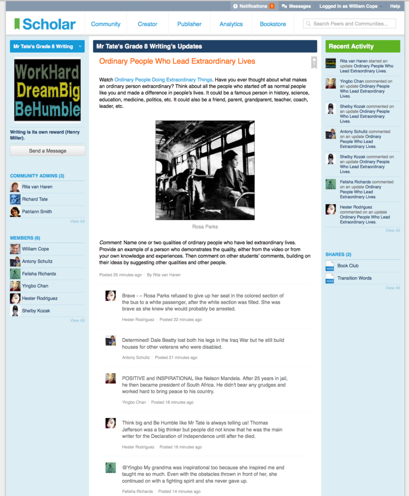 This is the theory of classroom discourse in the era of the social web. If you want to see the practice in Scholar, see some of the videos where students and teachers speak about the experience, here.