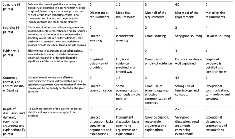 - Select one disease to focus on in the scenario you create in your update.