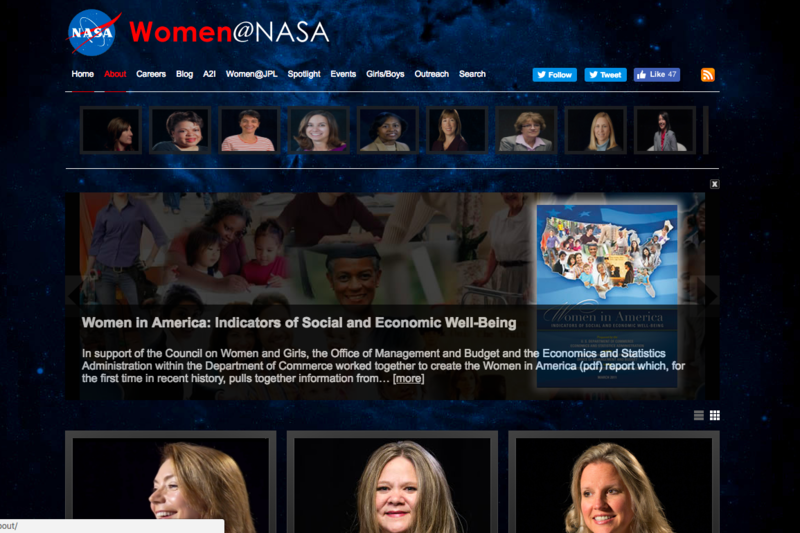 I was please to find the website Women@Nasa. On it's homepage it shows women who work at NASA and it gives a glimpse into their cildhoods and interests. What stands out most to me is that these were normal girls, some like dolls, and some liked the outdoors. It's important that these stories be told so that girls can see that a career in STEM does not require the extraordinary, just exposure and interest.