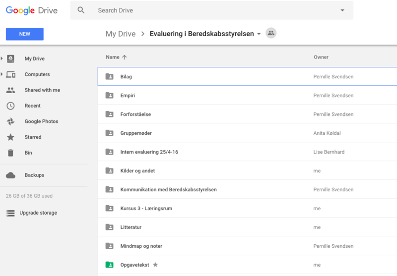In each project i have done at RUC the tools provided in Google Drive have been central to collaborative effort developing, writing and curating the academic report that concludes each semester. The students of the project group share a folder which contains all the information and data produced in the research project. A project usually has three phases: development, data collection and the writing phase. As the semester moves along the workload on the group intensifies, the data in the Drive grows and the way Google Drive is used changes.